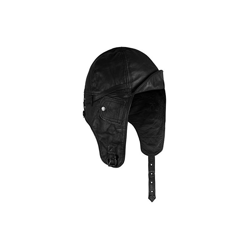 normani Aviator Leather Hood Pilot Hat Made of Genuine Cowhide Leather, black