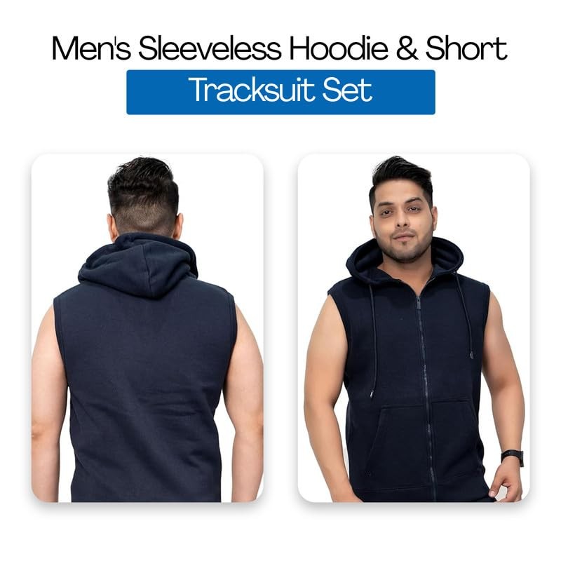 - 【𝐃𝐄𝐒𝐈𝐆𝐍 & 𝐋𝐎𝐎𝐊】Introducing our Men's Sleeveless Sweatshirt Hoodie Top Short Tracksuit Set, designed to offer comfort, style, and versatility. This top features a sleek sleeveless design that can be easily layered for a sporty look. The hoodie adds a touch of urban fashion, making it perfect for different occasions.