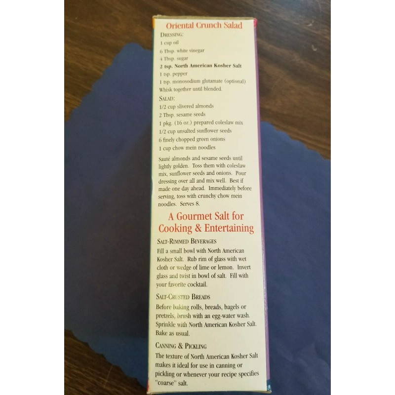 North American Salt Co (ONE BOX) KOSHER SALT 3 POUNDS FOR KOSHER AND GOURMET COOKING RECLOSABLE SPOUT