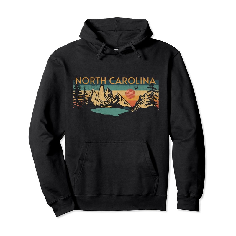 - North Carolina with mountains retro sunset vintage design. Show off your love of nature, hiking, camping and the outdoors.