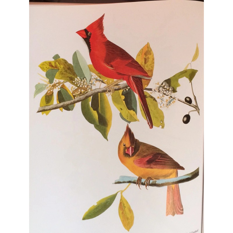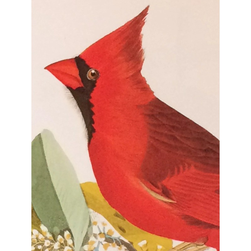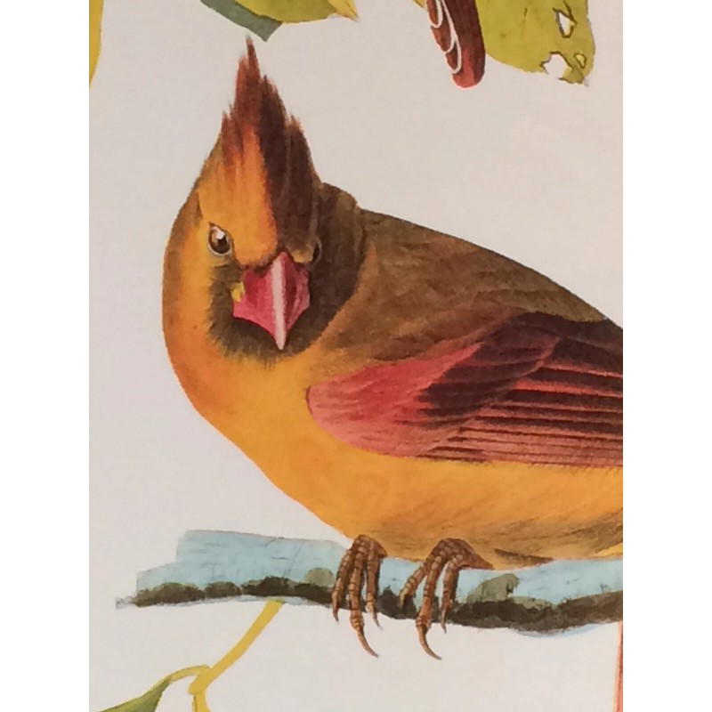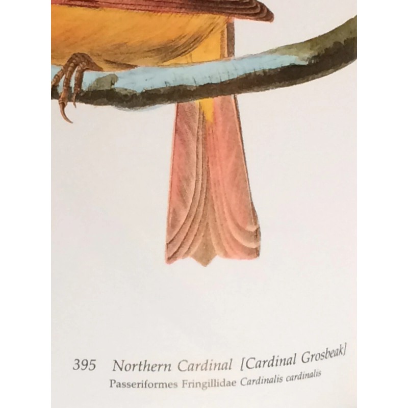 Northern Cardinal or Cardinal Grosbeak Audubon Print 15" x 11.5" Lithograph 395
