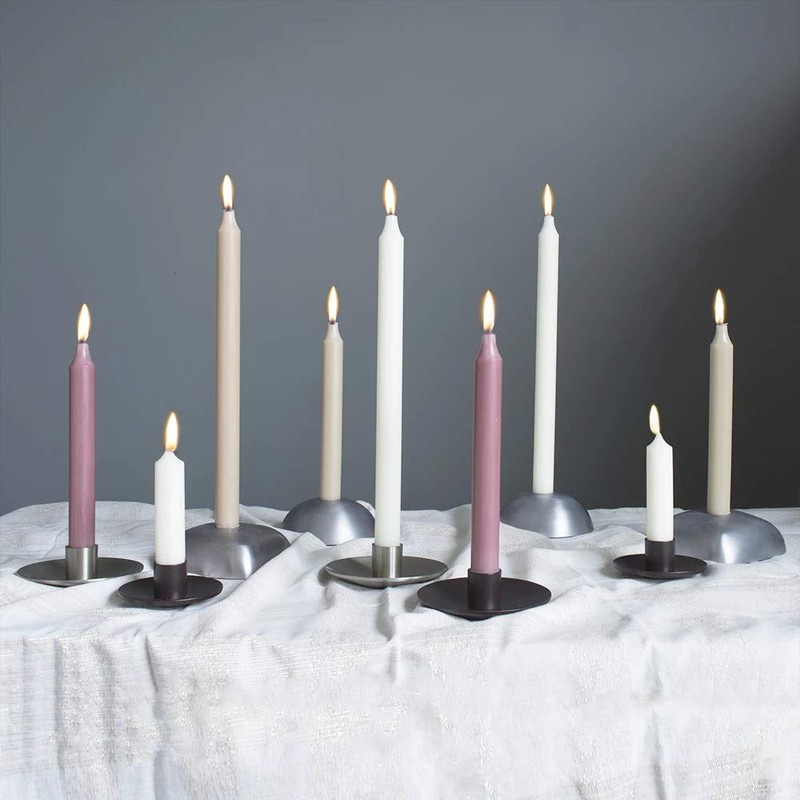 Each Taper burns 1 inch per hour. Smokeless and dripless, fragrance-free and fits all standard taper holders.