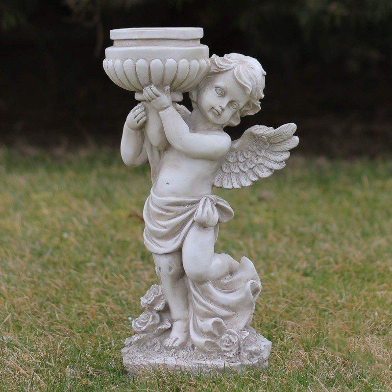 - Heavenly Cherub Holding Birdbath Garden Statue