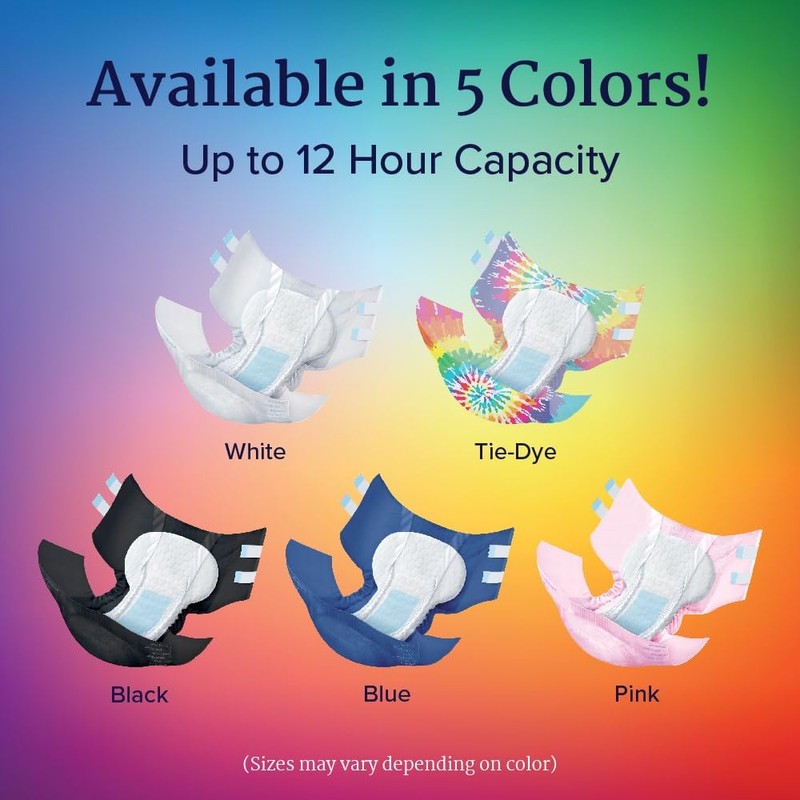 Super-premium adult diapers with a waterproof, thick plastic exterior resists sagging, odors, condensation, leaks and tears to stay dry for up to 12 hours. The triple layer, high-capacity absorbent core is ideal for nighttime incontinence, bedtime leaks, extended time away from home during the day and managing bowel incontinence.