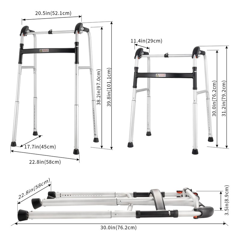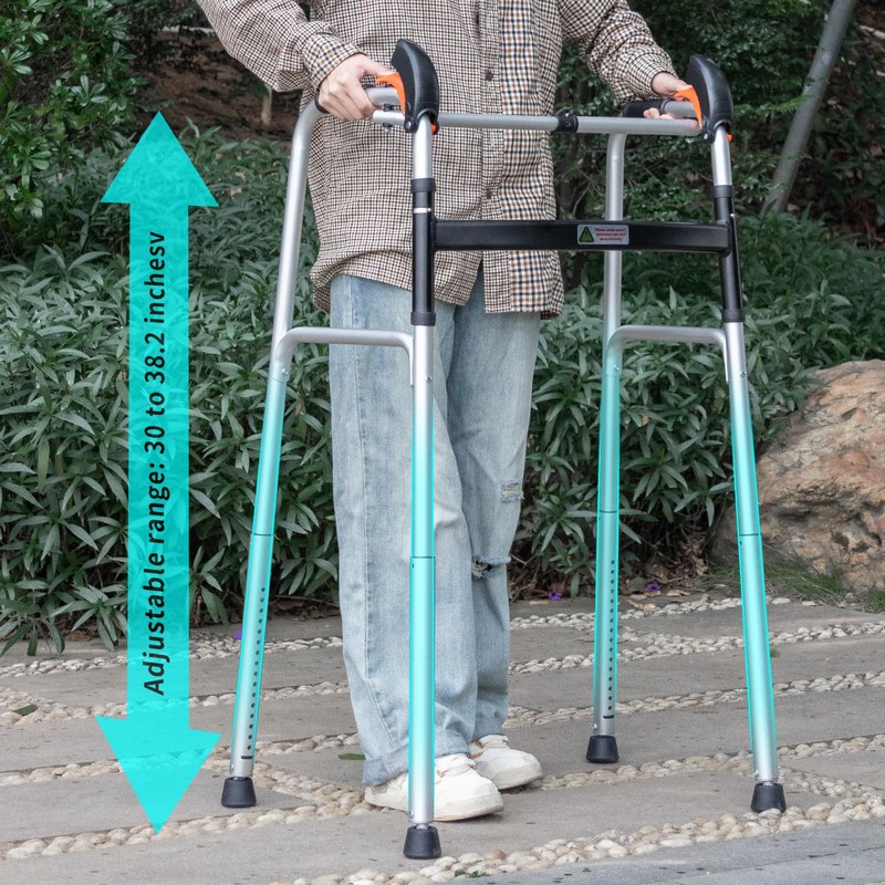 - Customizable and Portable: With 16 height adjustment options spanning over 7.8 inches and an adjustable range of up to 38 inches, this walker accommodates users of different heights, from shorter individuals to taller ones. Its one-click folding mechanism and compact design make it ideal for tight spaces, ensuring effortless transport and immediate use without the need for assembly.