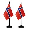Norway Desk Flag Set, 2 Pack Norwegian Table Office Flags, Small Mini Desktop Flag With 12" Solid Black Pole, Black Base, Miniature Desktop Flag