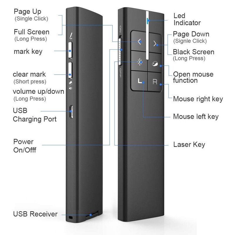 - Long Control Range – Up to 165ft wireless control rang allows you moving freely in larger classroom to enjoy a range of rich content interaction with your audience. It’s teacher must have tool for wireless presentation clicker