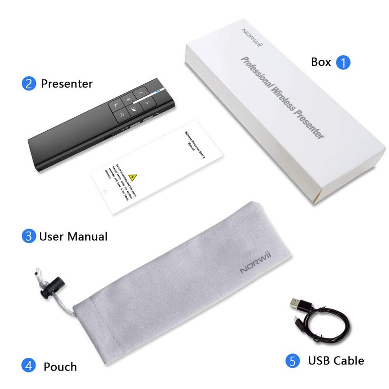 NORWII Wireless Presenter Remote for PowerPoint, Presentation Remote Control Clicker with Complete Air Mouse Function, Handheld Mouse Clicker for Mac, Computer, Laptop, Google Slides, N99