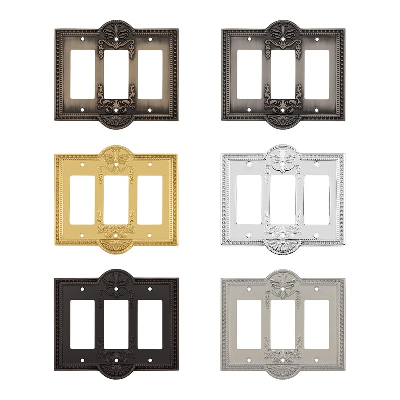 Nostalgic Warehouse 719859 Meadows Switch Plate with Triple Rocker, Bright Chrome