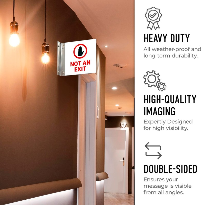 - DUAL-SIDED VISIBILITY: These projecting signs are designed to be visible from both sides, allowing for easy identification of safety equipment, doors, workstations, and other important areas in hallways.