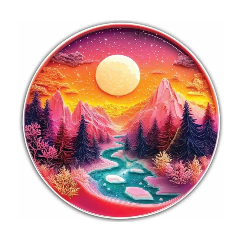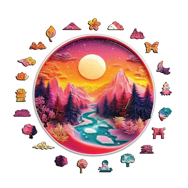 Not Specified Pink Mountains Wooden Jigsaw Puzzle Round Shape Adults Kids Small/A5 $39.99 NIB