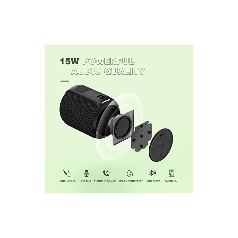 - 【Clear&Delightful Sound】: The subtle little body delivers a stunning 15W sound. Well made for distortion-free sound, the Bluetooth speaker has loud highs, a crisp midrange and full bass to put you in the zone!