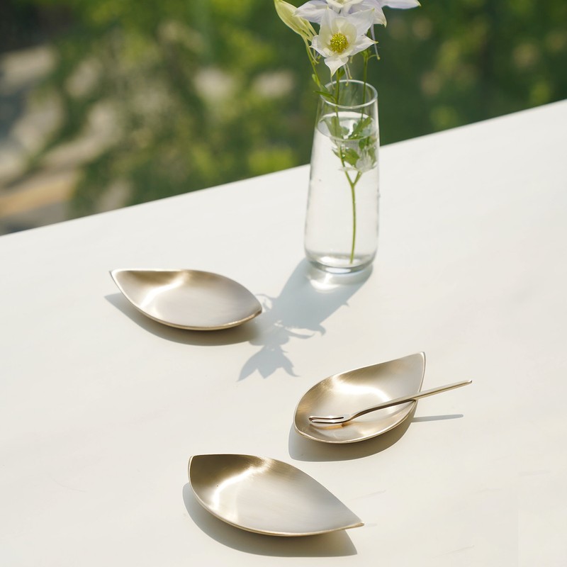 Notdam Bangjja Yugi Leaf Plate Small / 놋담 방짜유기 나뭇잎 접시 소