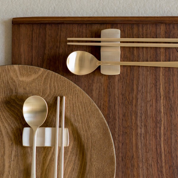 Notdam [Department Store Gift Packaging] Organic couple spoon + wave spoon holder set for 2 / 놋담 [백화점 선물포장] 유기 부부수저+물결 수저받침 2인세트