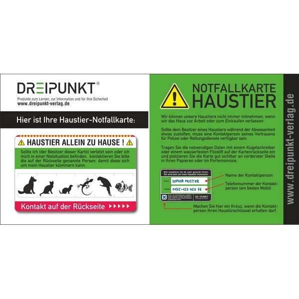 - Notfallkarte 'Haustier': PVC-Karte im Scheckkartenformat für die Brieftasche