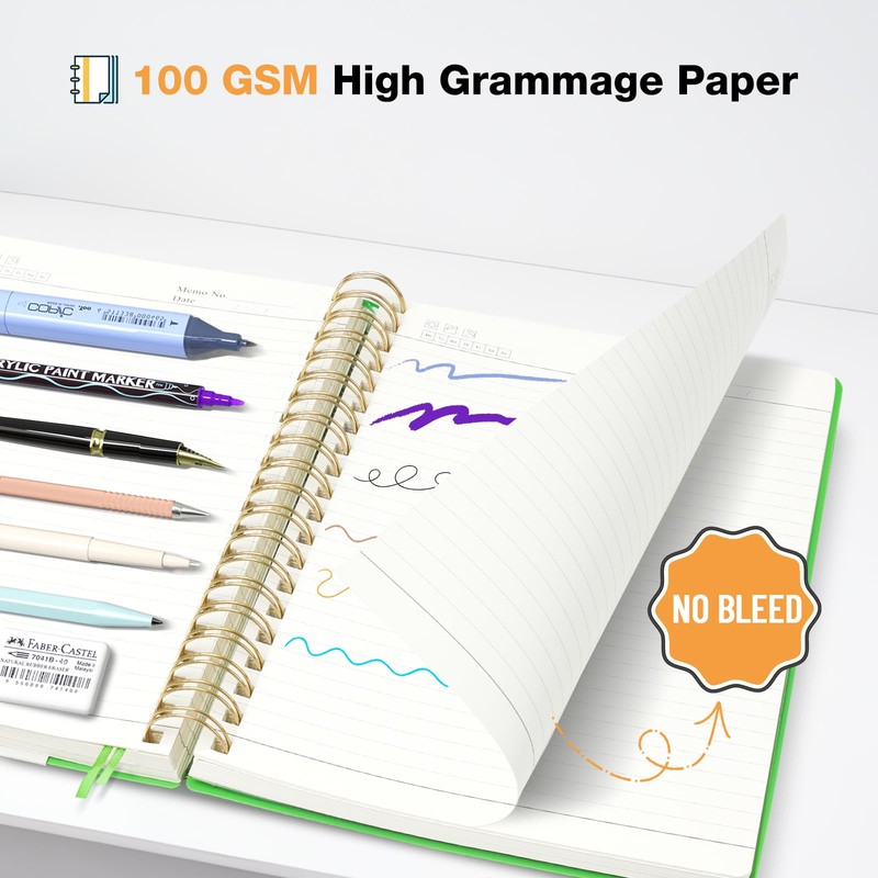 - 100 gsm thick paper: the A5 notebook is made of college grid paper with 7 mm spacing, the paper quality is 100 g/m², which feels smooth and thick enough to prevent ink from entering, is suitable for most pen types and provides a pleasant writing experience