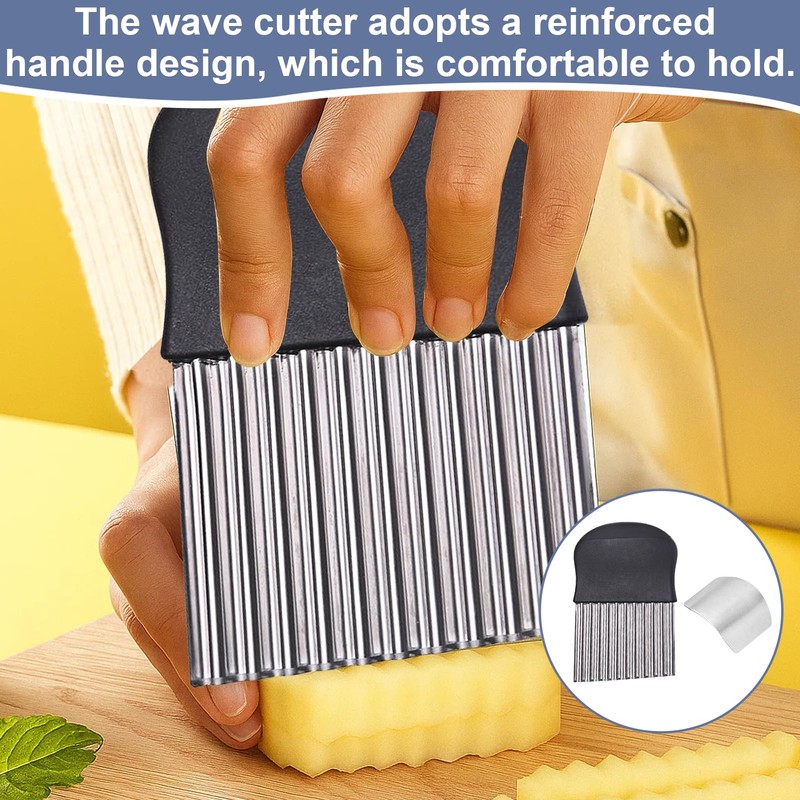 - 【Crinkle Cutter for Potatoes】 Crafted with a durable stainless steel blade and a protective finger guard, this crinkle cutter for potatoes lets you slice through veggies effortlessly while adding a fun, wavy shape to each cut.
