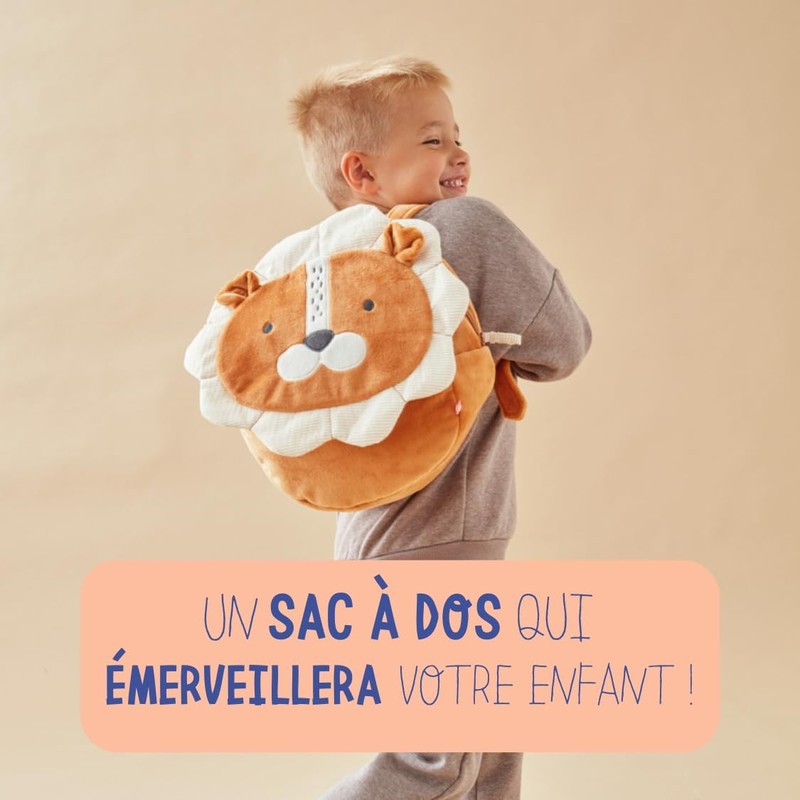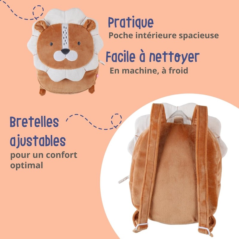 NOUKIE'S - Veloudoux Backpack - From 10 Months - Adjustable Straps - Gift - Babou the Lion