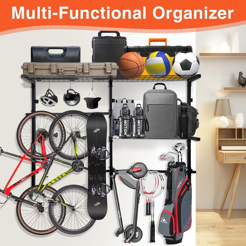 - Adjustable & Expandable Garage Storage Shelves: Adjust the height of the shelves to perfectly fit your basketballs, hockey sticks, baseball bats, or any other sports gear. No more struggling to find space for your equipment!