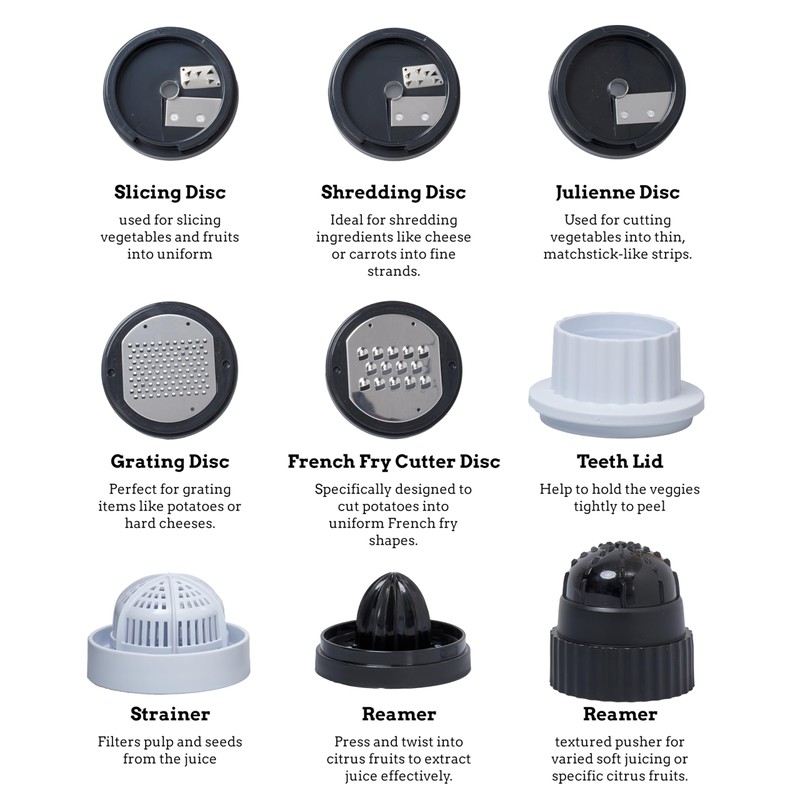 Nourished Essentials 8-in-1 Spiralizer Juicer Grater Set of 9 - Compact Plastic Vegetable Noodle Maker with Stainless Steel Blades - Dishwasher Safe - Spiralizer for Veggie Noodles