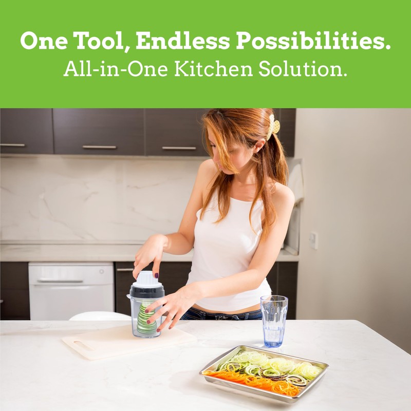 • Efficient storage solution: Comes with a removable container to neatly catch all freshly sliced fruits and vegetables - our spiralizer for veggies keeps your kitchen organized and mess-free