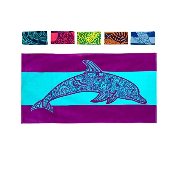 Nova Blue Dolphin Beach Towel – Tropical Blue & Purple Colors with A Unique Design, Extra Large, XL, Pool Towels (34”x 63”) Made from 100% Cotton