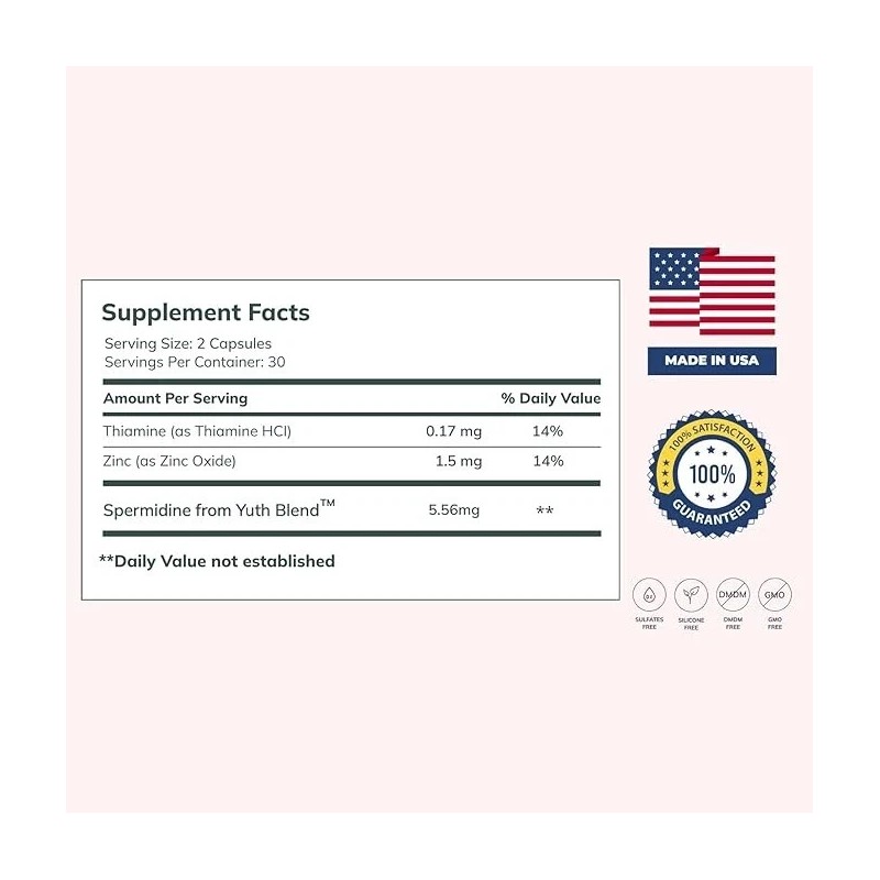 - PURE INGREDIENTS ONLY: Nova spermidine supplements for men and women are GMO-free, lactose-free, prescription-free, and silicone-free. With natural spermidine powder, we rejuvenate your body without any additives! Contains: 60 capsules, 30 servings (taking two capsules per day)