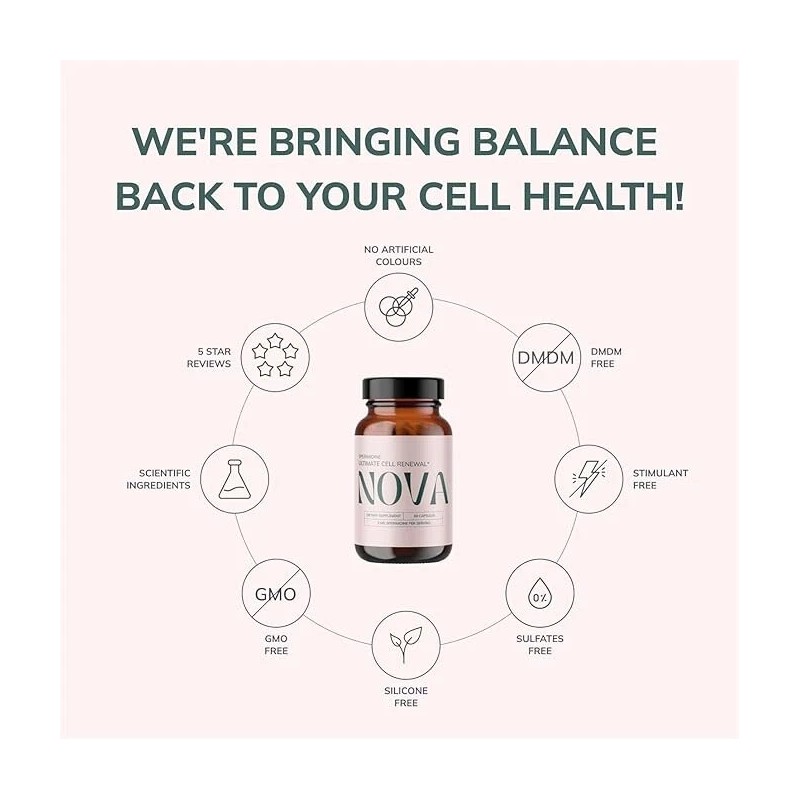 - CELLULAR RENEWAL FOR A NEW YOU: Leave thin hair, brittle nails, and lackluster skin behind. From the inside out, Nova’s Ultimate Cell Renewal vegan multivitamin can brighten and enhance your appearance! Discover that age is just a number.