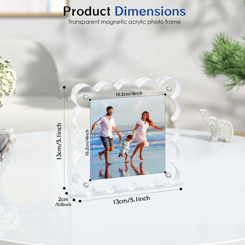 - 【Versatile 4x4 Acrylic Frames for Multi-Directional Displays】 Display photos horizontally or vertically with these 4x4 magnetic frames. Their slim, double-sided design allows for single or dual-view setups, perfect for desks, shelves, or walls in homes, offices, or events
