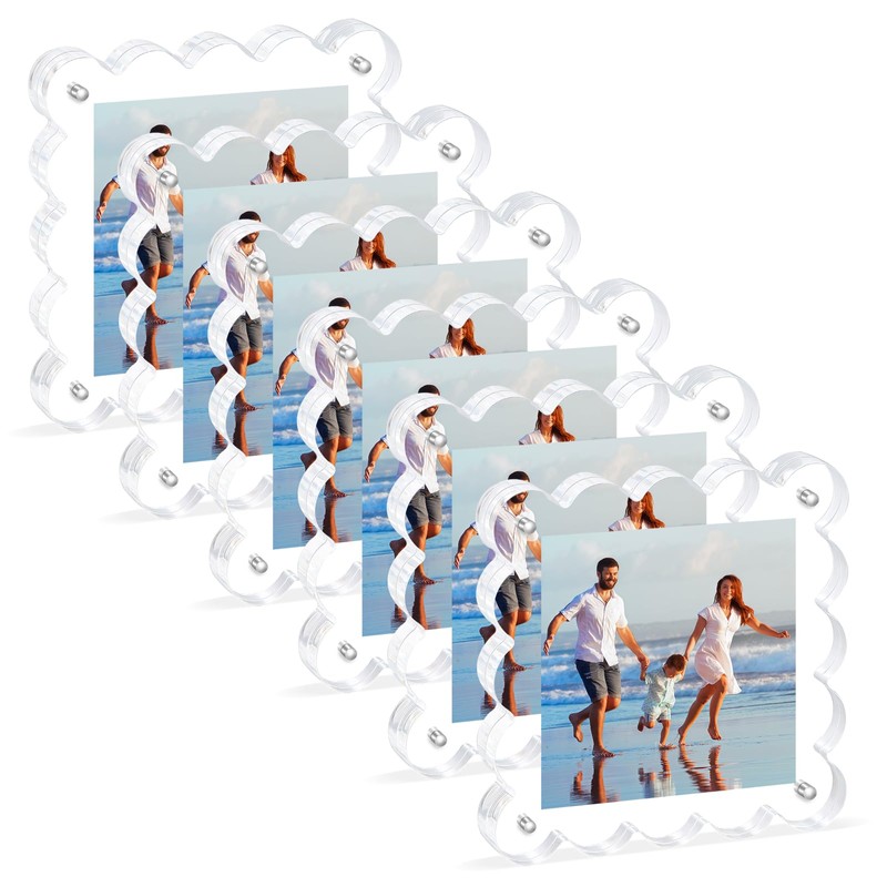 Novacrylion Acrylic Magnetic Picture Frames 4x4-6Pack Clear Freestanding Photo Frame.Double-Sided Scalloped Edges, 10+10mm Thick Block, for Modern Desktop Display &Perfect for Gifts (6 Pack, 4X4)