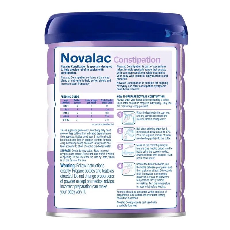 relief to babies with constipation. Novalac Constipation contains a balanced blend of nutrients