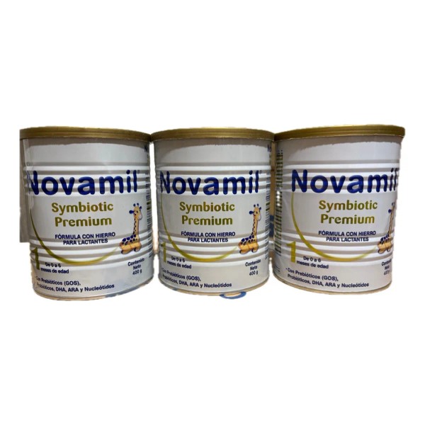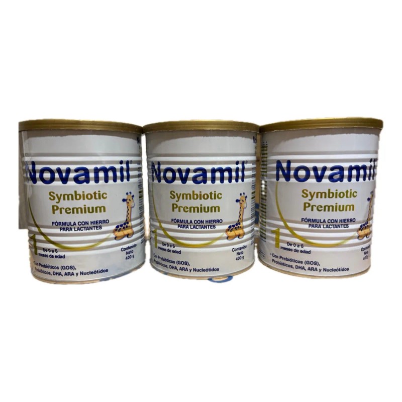 Novamil Symbiotic 1 Pack (3 latas x 400g) – Fórmula sin sabor con prebióticos y probióticos para bebés. 🍼 Apoya la salud digestiva y fortalece las defensas de los más pequeños. 🌟