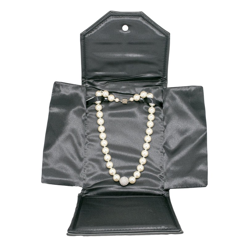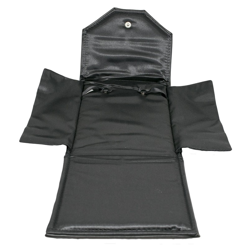 Novel Box Premium Large Black/Black Stitched Leatherette Pearl/Omega Necklace Folder + Custom NB Pouch