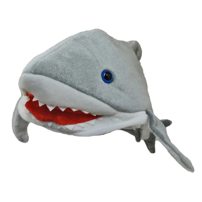 Novelty Giant Plush Killer Great White Shark Hat Grey Novelty Jaws Ocean Costume Cap