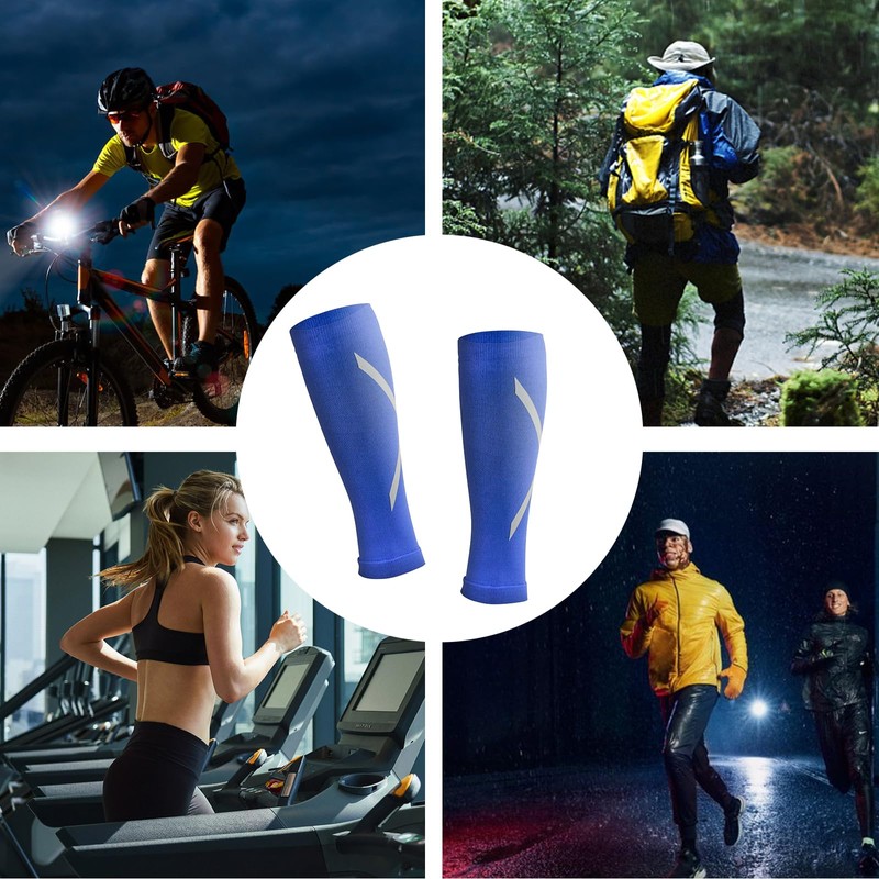 Novetec Calf Compression Sleeves for Men & Women - 20-30 mmHg Reflective Footless Sleeves for Shin Splints Night Running Cycling