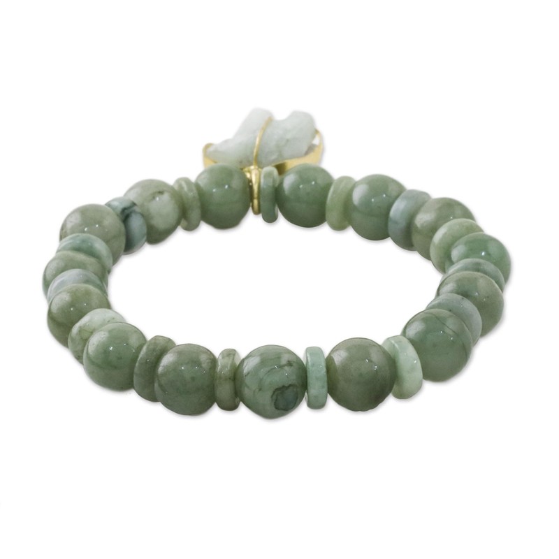 NOVICA Artisan Handmade Jade Beaded Stretch Bracelet in Thailand with Elephant Green Animal Themed [7 in Inner Circ. 10 mm W Pendant(s) 0.8 in L x 0.7 in W] ' Jade Elephant'