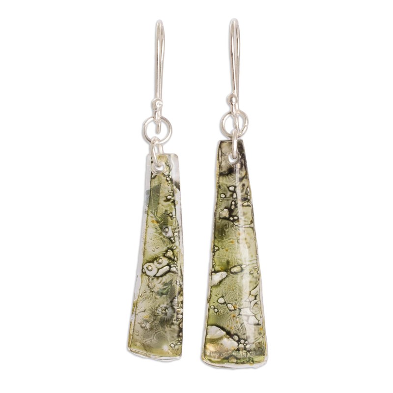 About this item: Rosario Leiva in Guatemala achieves an extraordinary effect with the design of these earrings. Inspired by ecological concerns, she recycles CDs and treats them with acrylic stained glass - the result are unique and original earrings in shades of green, underscored by contrasting textures. The earrings are worn on sterling silver hooks.