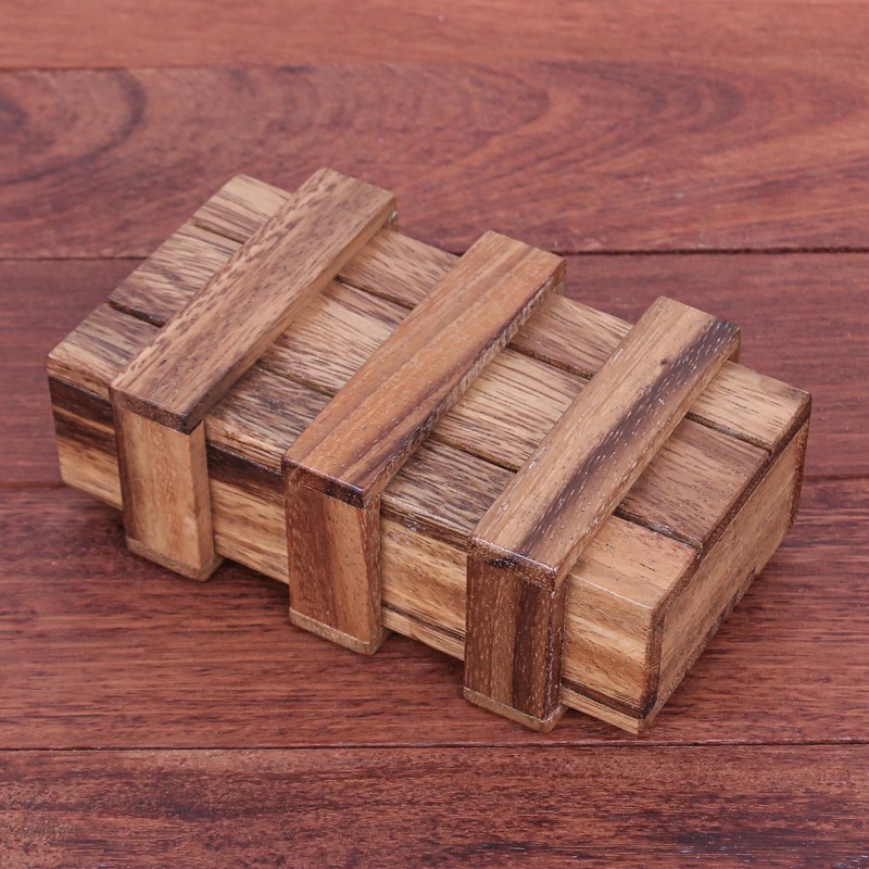 NOVICA Artisan Handmade Wood Puzzle Raintree Game Brown Woodglass Thailand Chess Sets Games Puzzles [Box 1.9in H x 5.5in W x 3.2in D 0.5in H x 0.5in W x 0.5in D] ' Double Magic'
