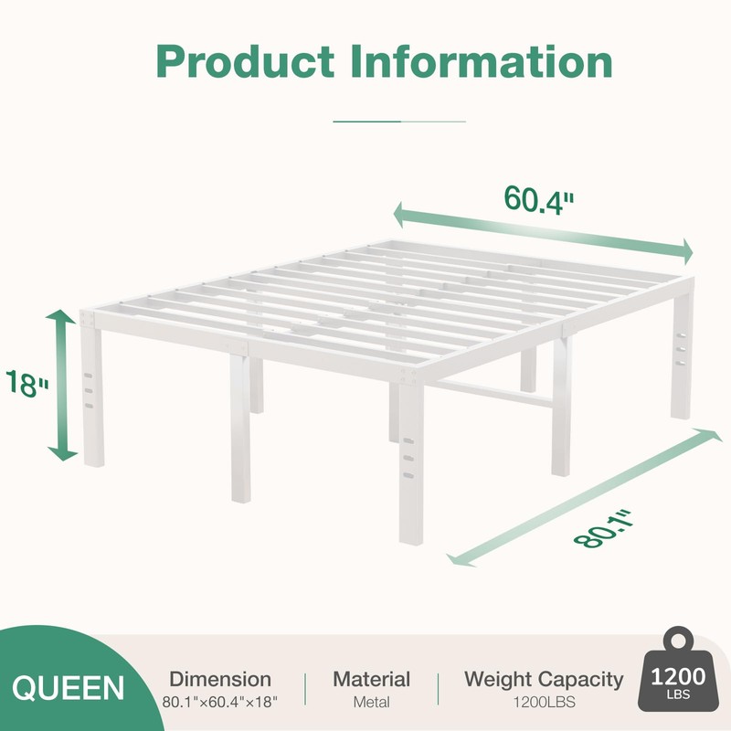 - 【Stylish Design】Our queen size bed frame features a sleek and minimalist design with a matte white finish, adding a contemporary touch to any bedroom.
