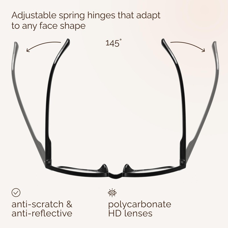 - [Adjustable Spring Hinge] Ergonomic design, spring-hinged temples can open 25° outward to accommodate any face shape