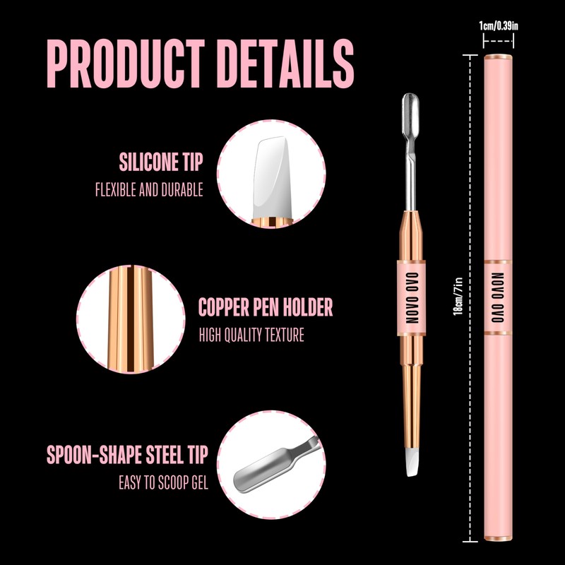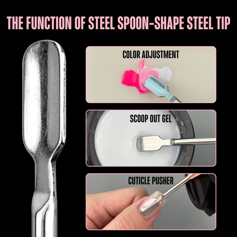 - VERSATILE DOUBLE-SIDED APPLICATION PEN: This specially designed pen features dual functions: the spoon tip effectively scoop out the poly gel from the Jar, fills and shapes within the dual form, while the silicone end takes the place of a brush, making Finely crafted and decorated a breeze. Crafted for efficiency, this durable tool ensures smooth application and superior control for every nail artist.