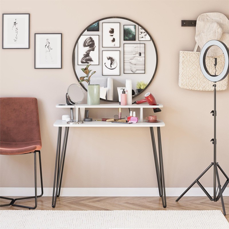 • Enjoy a worry-free morning styling routine with the Kimberly At Home Vanity from the Novogratz