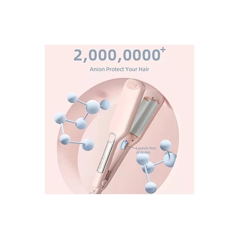 Rizador de pelo ONDULADO NOVUS de 28 mm, rizador de pelo ondulado, rizador de pelo, ondulado para playa, herramientas de peinado con iones negativos, antiescaldaduras, pantalla LCD de doble voltaje,