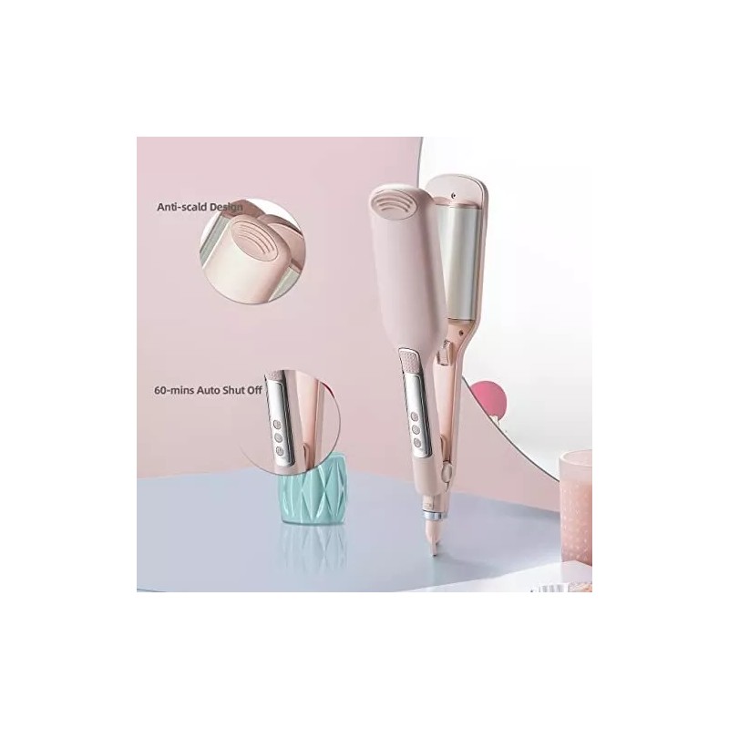 Diseño antiquemaduras y fácil de usar. Hay un diseño antiquemaduras con silicona en la parte superior del rizador Novus que protege eficazmente los dedos de las quemaduras durante el uso. Nuestro ondulador de pelo tiene un diseño curvo en forma de S con 2 cilindros, sujeta el cabello y presiona suavemente, puedes crear un efecto de onda perfecto fácilmente en 5 segundos.