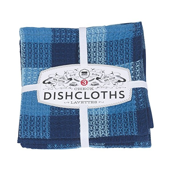 - Two plaid patterned dishcloths and one coordinating solid dishcloth