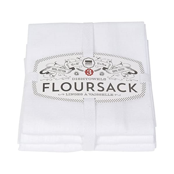 Now Designs Floursack Kitchen Dish Towels, White, 3 Count