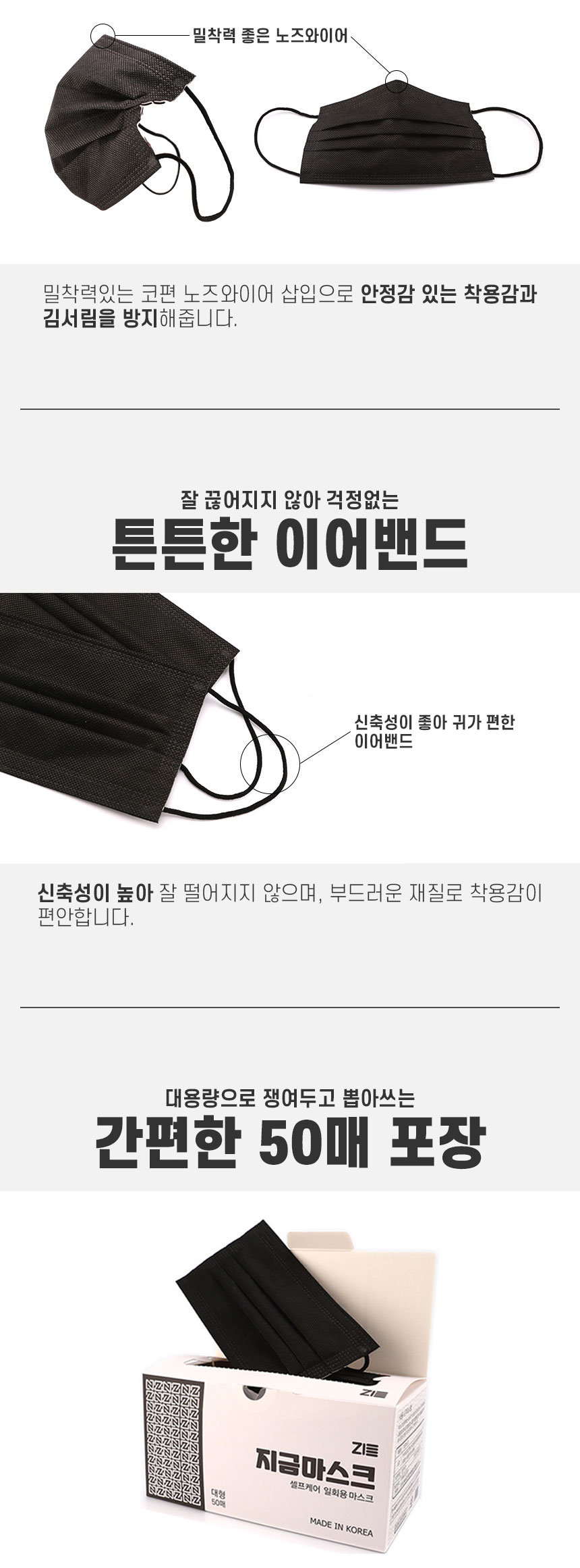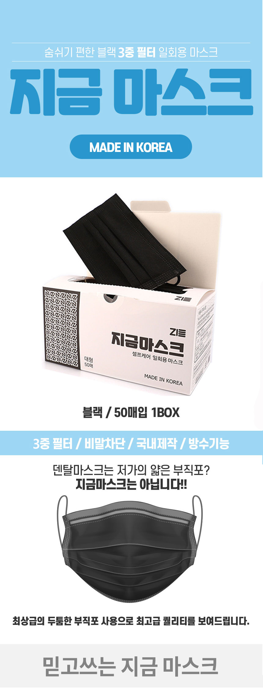 Now self-care triple MB filter disposable dental mask black 50 sheets, 2. 4 boxes of 50 sheets / 지금 셀프케어 3중 MB필터 일회용 덴탈마스크 블랙 50매, 2. 50매 4박스