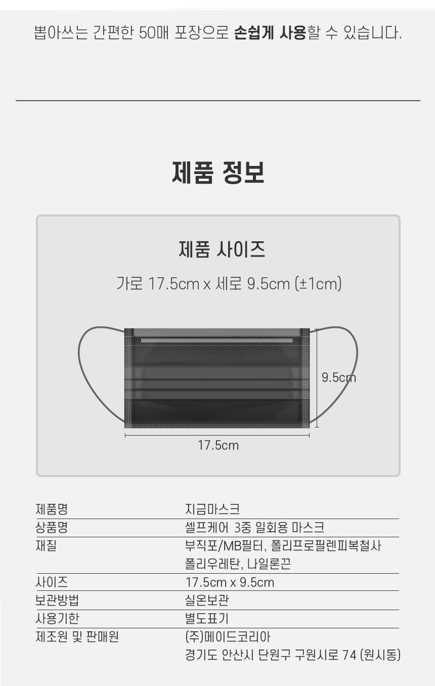 - Product name and model name: Now 4-ply dental mask // 50 sheets