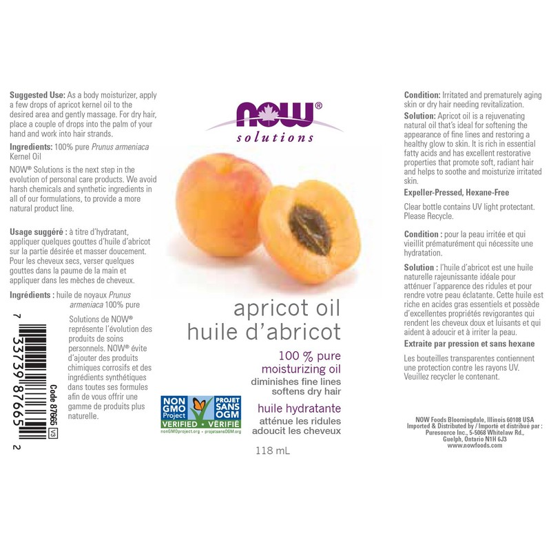 NOW Solutions Moisturizing Apricot Oil, 118mL
