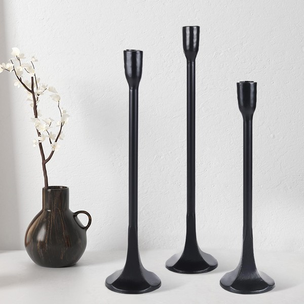 - 【Perfect Height Variation】These tall black candlestick holders include three candle holders in varying heights: Small (12.2"), Medium (14"), and Large (15.5"). The height variation allows you to create a dynamic and layered look on your tabletop, mantel, or shelf. Each black taper candle holders accommodates taper candles with a 0.86" opening, designed for 7/8" taper candles.
